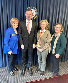Paula Andrews (Past-State President), Representative Seth Magaziner, Terry Schimmel (Past-Legislative Action Chair), Pat Cole Legislative Action Committee members shared with Representative Magaziner the work of GFWC RI in the area of legislative and policy issues.